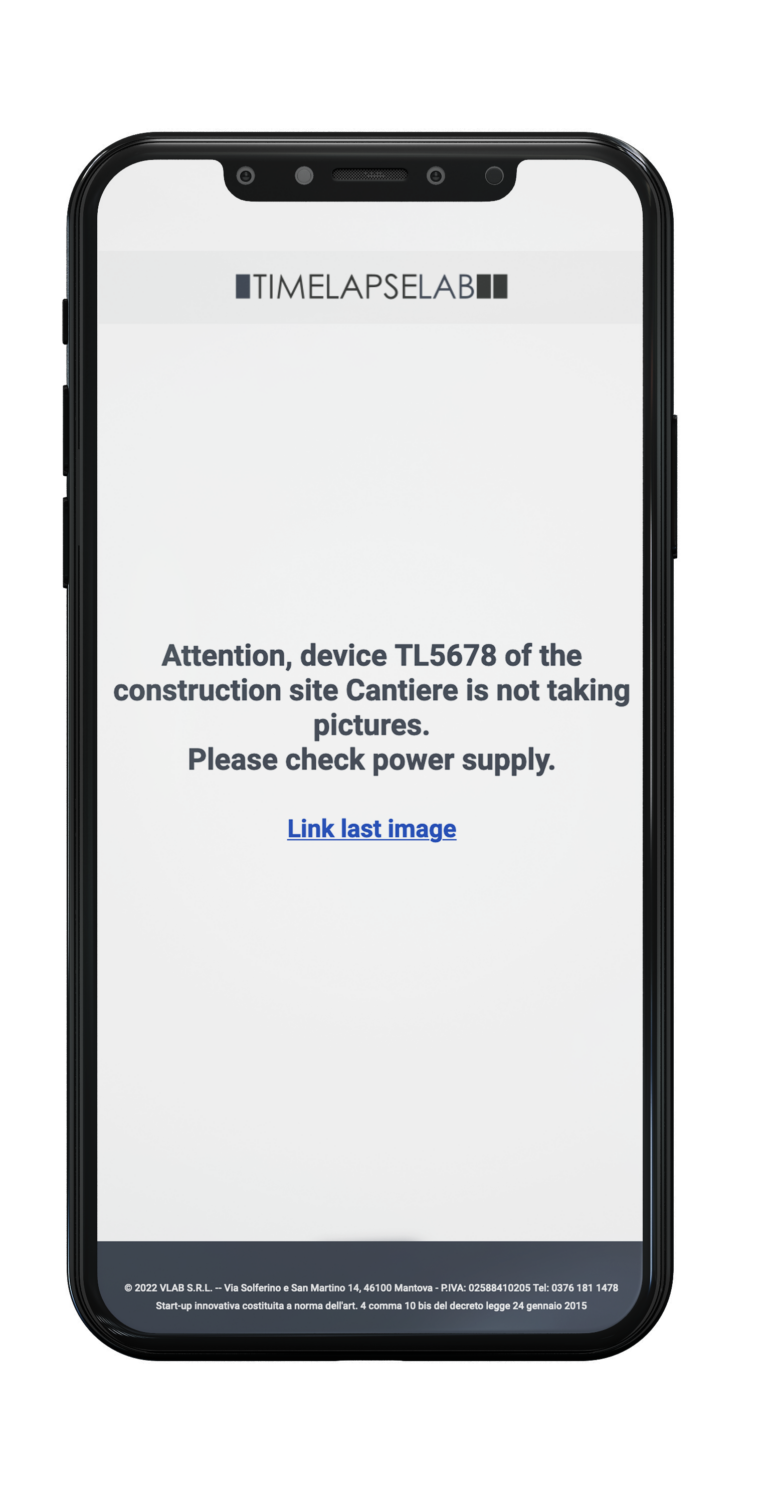 Platforma za sisteme daljinskog nadzora gradilišta šalje brza obavještenja u slučaju anomalija kao što su nestanak struje na gradilištu i pristup u neradno vrijeme. Porukama upozorenja je lako upravljati postavljanjem frekvencije aktivacije i slanja.